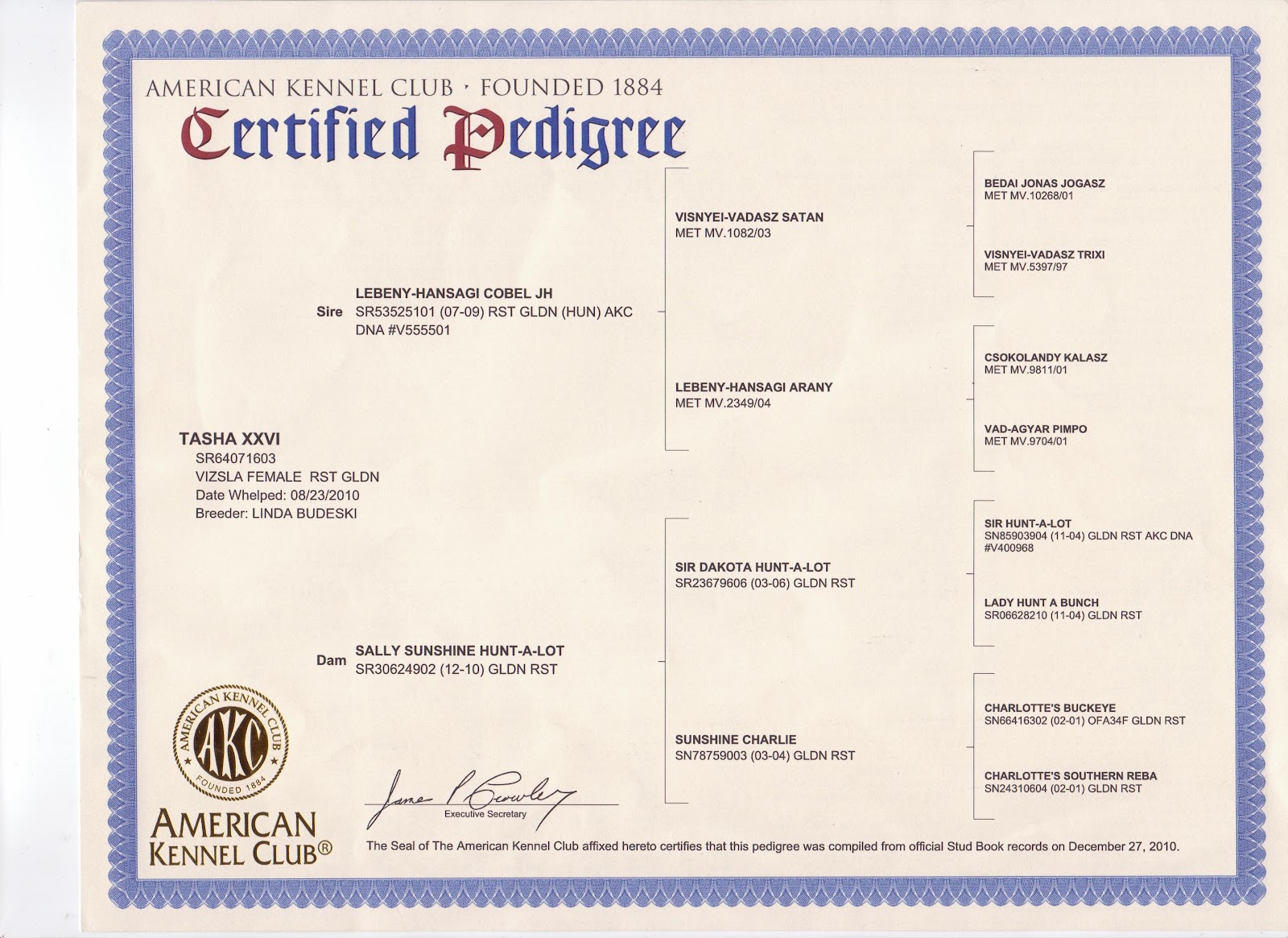 Tasha’s pedigree: