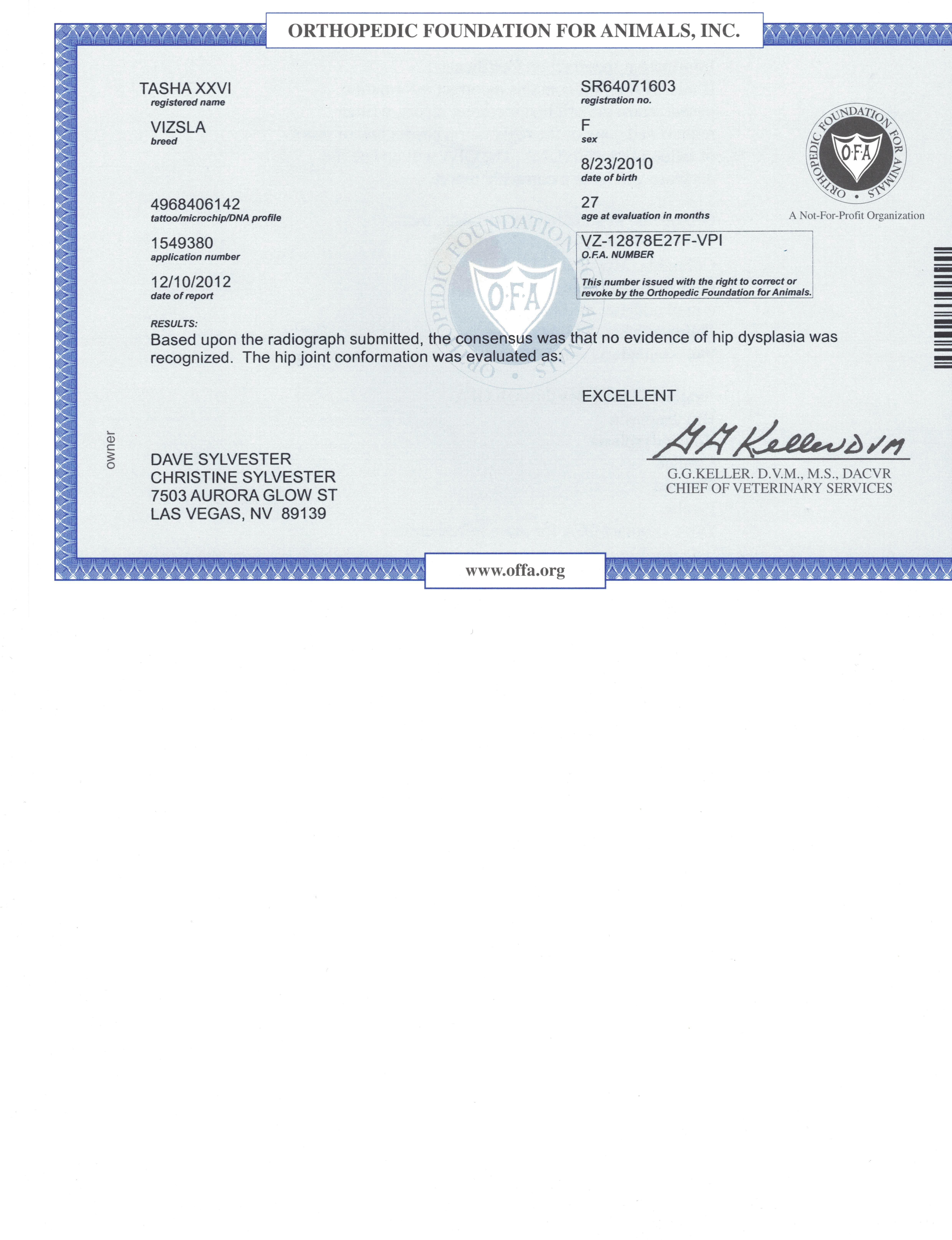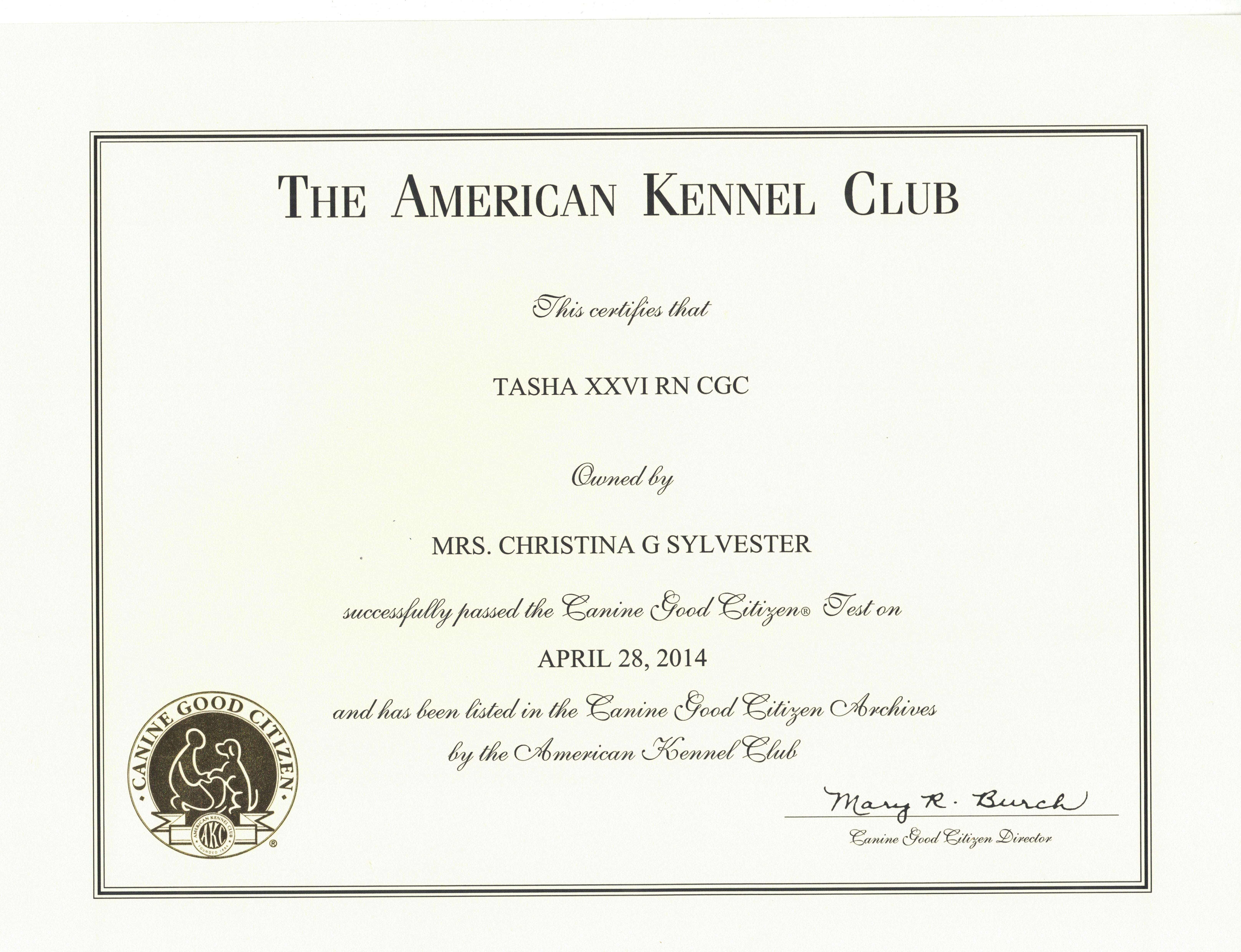Titles: World Beauty Champion Tasha XXVI RN, CGC